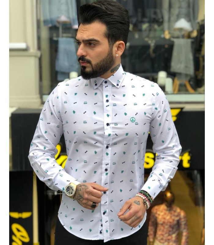 Baskılı Erkek Poplin Gömlek