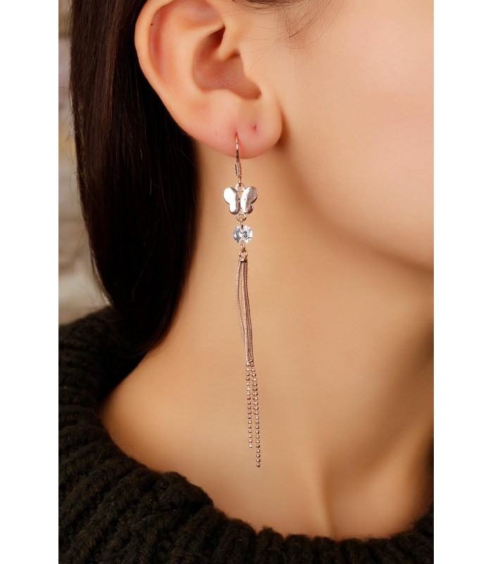 Zincir ve kristal taş tasarımlı Bronz Renk Kelebek Figürlü Bayan El Bileziği ile zarif bir tarza imzanızı atacaksınız.