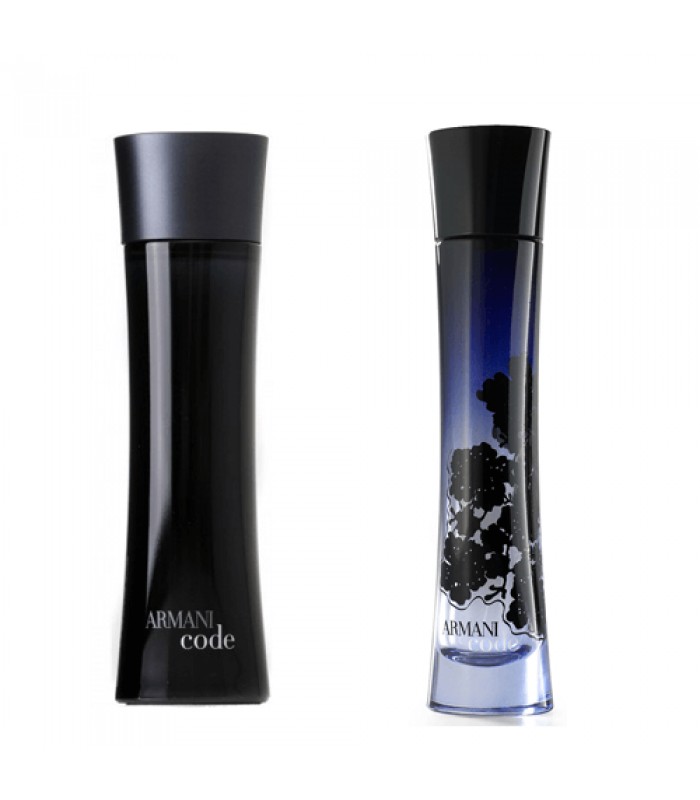 Armani Code, turuncu çiçek esansı, siklamen, yasemin ve vadideki zambak karışımı ile teninizi süslüyor. Parfüm şişesi duygusal kavisler ve parlak bir bitişle incecik bir siluet olarak tasarlanmış. İnce bir şifonn üzerindeymiş gibi basılan, mavi renkte nakışlarla sunulan şişenin yüzeyi zarafetiyle dikkat çekiyor.