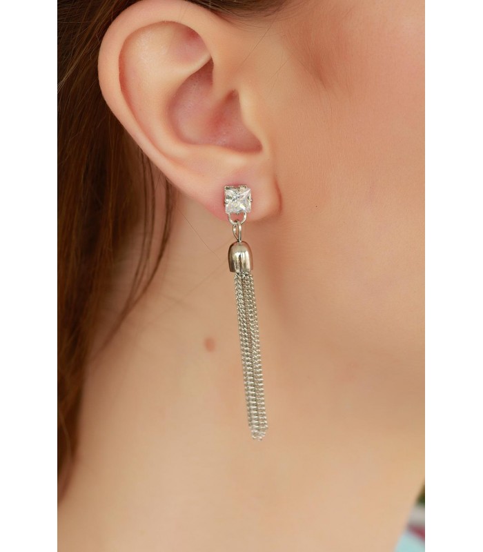Gümüş Renk Zincir Tasarımlı Bayan Sallantı Küpe
