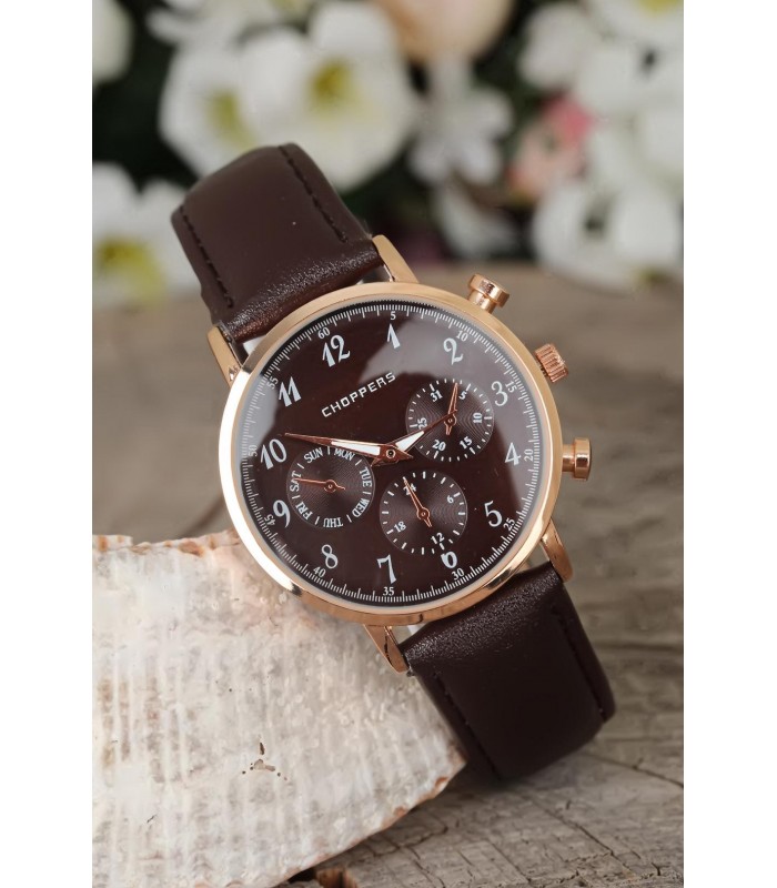 Şıklığınıza Kahverengi Deri Kordonlu Rose Renkli Metal Kasa Bayan Kol Saati ile kolayca imza atacaksınız.