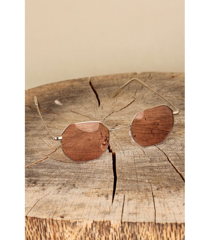 Kahverengi Retro Metal Silver Çerçeveli Güneş Gözlüğü