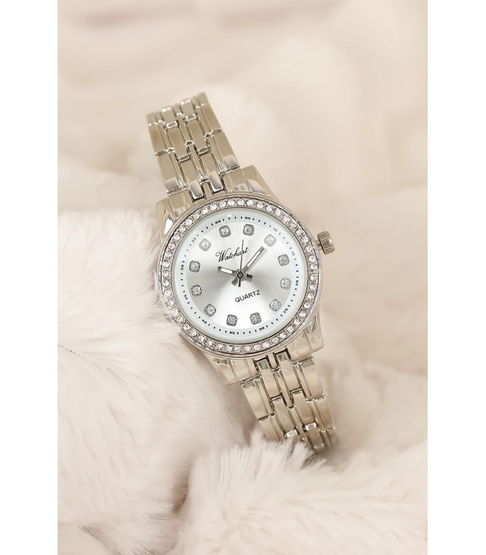 Silver Renk Metal Kordonlu Taşlı Kasa Bayan Saat