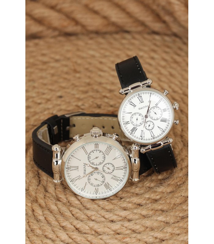 Şıklık Siyah Deri Kordonlu Beyaz Renk İç Tasarımlı Silver Renk Metal Kasa Sevgili Saatleri ile çok daha kolay olacak.