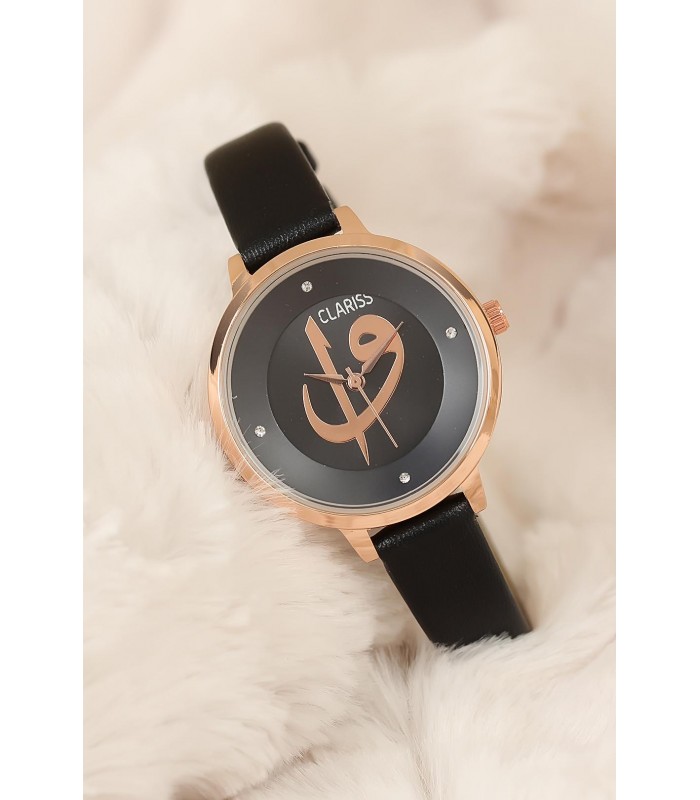 Farkınızı Siyah Deri Kordonlu Clariss Marka Elif Vav Bayan Saat ile yansıtın.