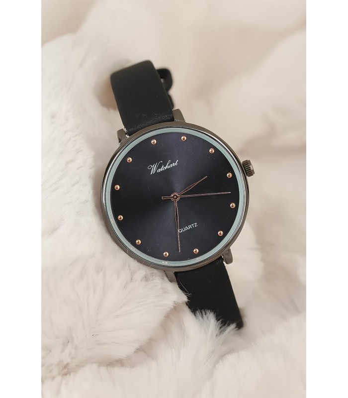 Şıklığınızı Siyah Deri Kordonlu Füme Metal Kasa Bayan Saat ile yansıtın.