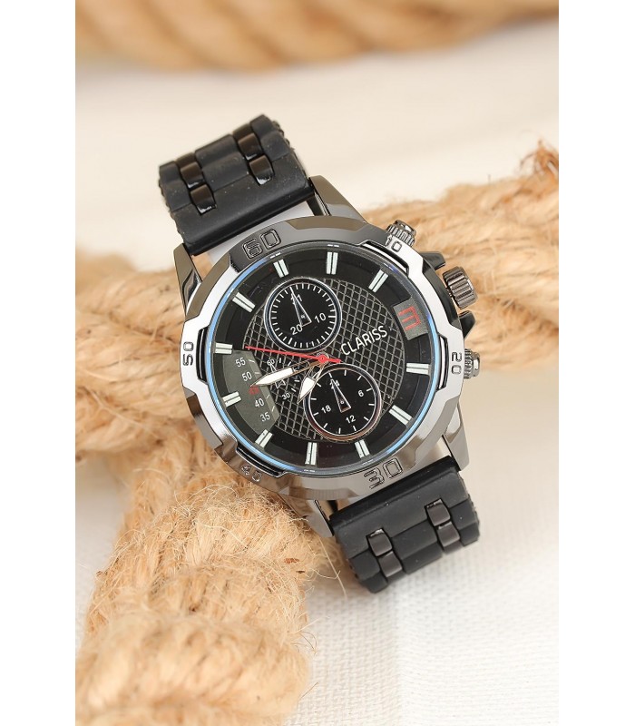 Günlük kombinlerinizi Siyah Silikon Kordonlu Spor Kasa Clariss Erkek Kol Saati ile hareketlendirin.