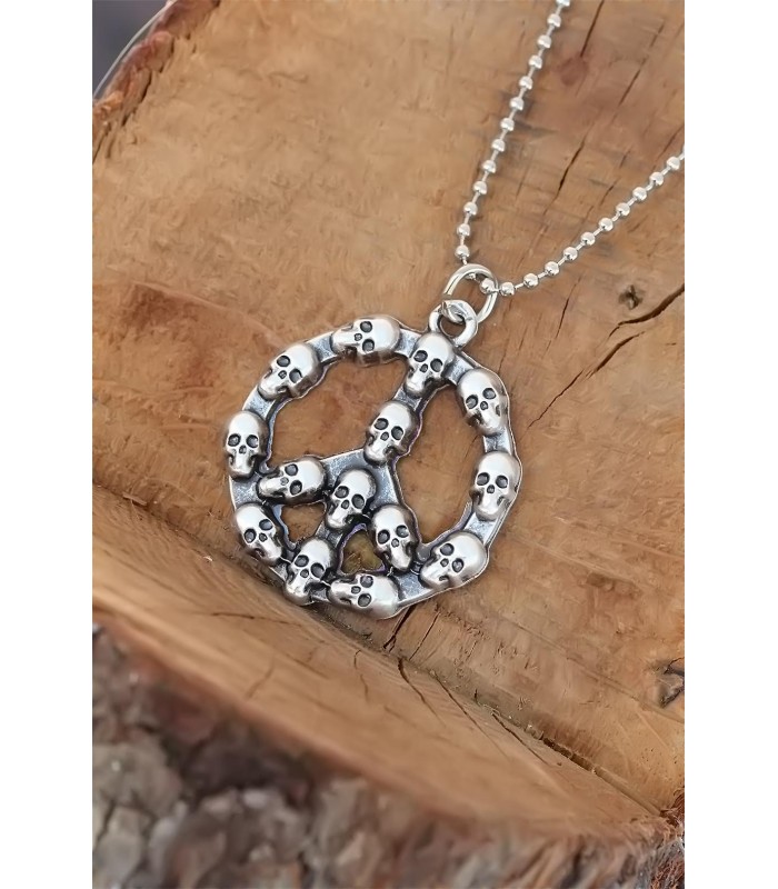 Yeni sezona Top Zincirli Kuru Kafalı Barış Simgesi Tasarım Eskitme Gümüş Renk Kolye ile tarz bir dokunuş katın.