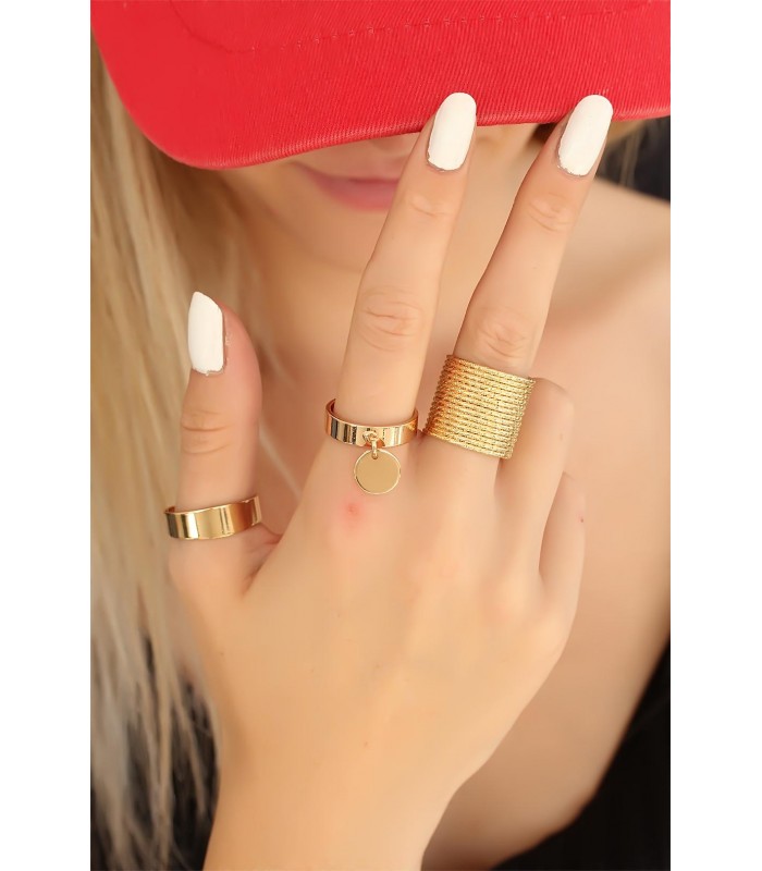 Havalı kadınlar için Trend Gold Renk Metal Bayan Yüzük Seti özel olarak tasarlandı.