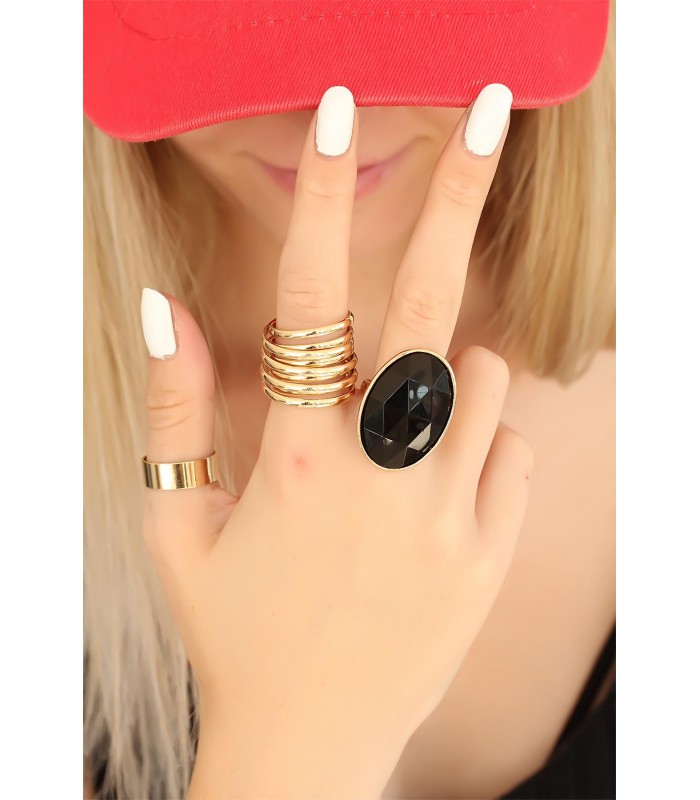Etiketler: Trend, Siyah, Taşlı, Gold, Renk, Metal, Bayan, Yüzük, Seti