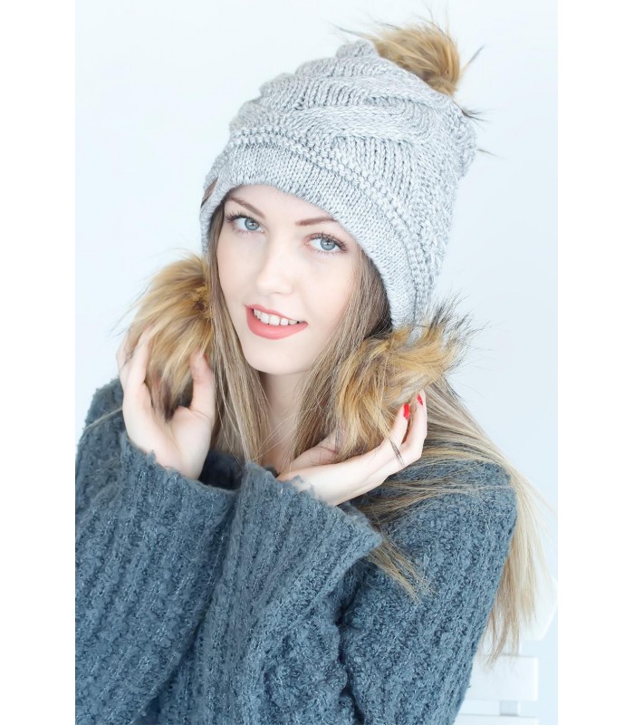 Kombinlerinizi Tüylü Tasarım Camel Renk Ponponlu Gri Bayan Bere  ile sıcacık bir görünüme ulaştırın.