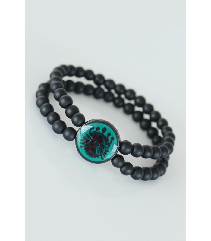 Yeşil Renkli Metal Üzerine Osmanlı Arması Figürlü Siyah Renk Çift Sıra Doğal Taş Erkek Bileklik