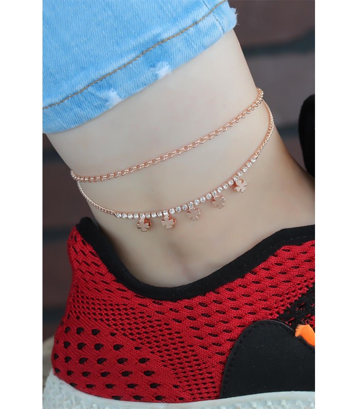 Dolu dolu şıklık Zirkon Taşlı Çift Zincirli Rose Renk Yonca Hal Hal modeli ile çok daha kolay olacak.